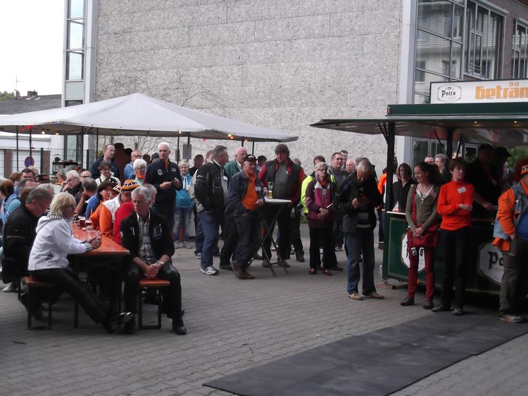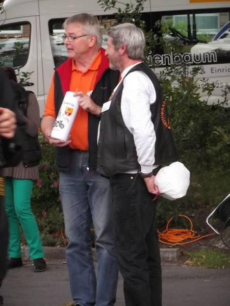 Der Abend war dann der Preisverleihung und den offiziellen Reden gewidmet, wobei das WM-Spiel der deutschen Mannschaft auch seinen Platz hatte. Die Übergabe des Wanderpokals an die Kolpingsfamilie Weinheim, dem nächstjährigen Ausrichter, schloss dann das Motorradfest ab.