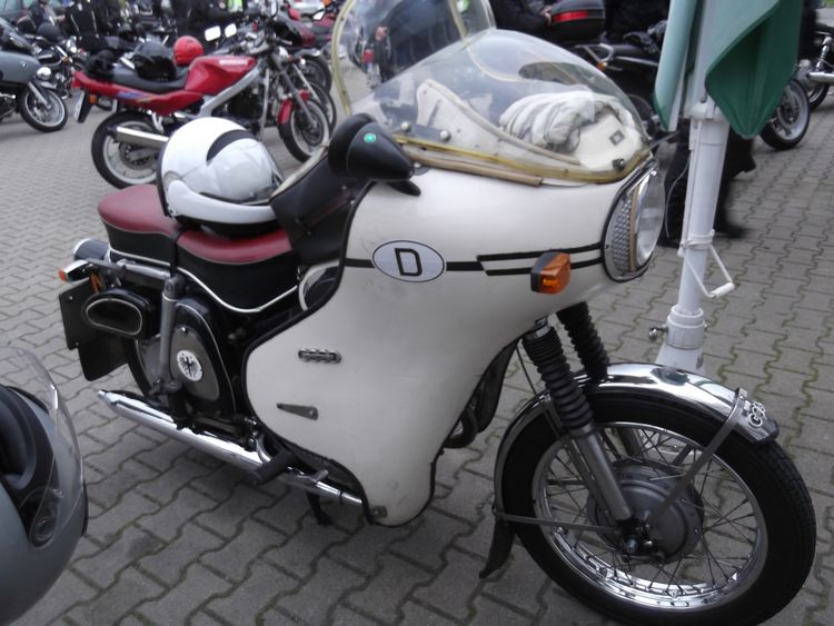 164 teilnehmende Motorräder stellen einen neuen Teilnemerrekord dar. Mit 2 Motorrädeern war auch die Kolpingsfamilie Aalen beteiligt. Ob Enduro, Tourer, Sportler oder Trike, alles war wieder beim Bikertrteffen vertreten. Auch einige "Oldie - Schätzchen" haben den Weg nach Warendorf gefunden. Eine BMW R 25/2 Baujahr 1952 mit 12 PS hat dann auch den Pokal für das ältsete Motorrad bekommen. Darüber hinaus war noch eine DKW mit Heinrichverkleidung Bj. 1954 und eine Adler von 1955 vertreten.